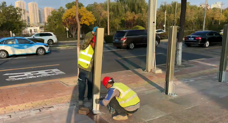 在城西傳統易澇商業區安裝現場,技術人員正緊張有序地進行擋水板的安裝作業。只見一塊塊銀灰色的鋁合金擋水板通過專用連接件迅速拼接成型,形成一道連續的防水屏障。